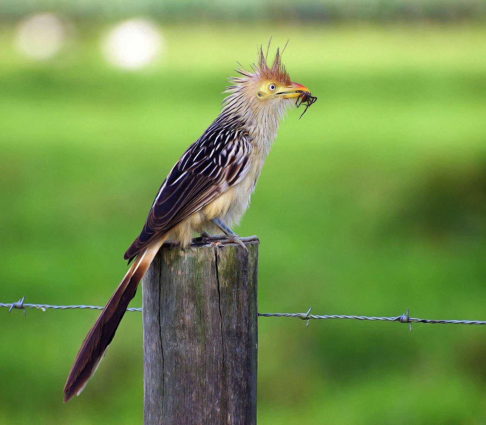 Гуира (Guira guira) с пойманной лягушкой. Такуарас, департамент Ниембуку, Парагвай.