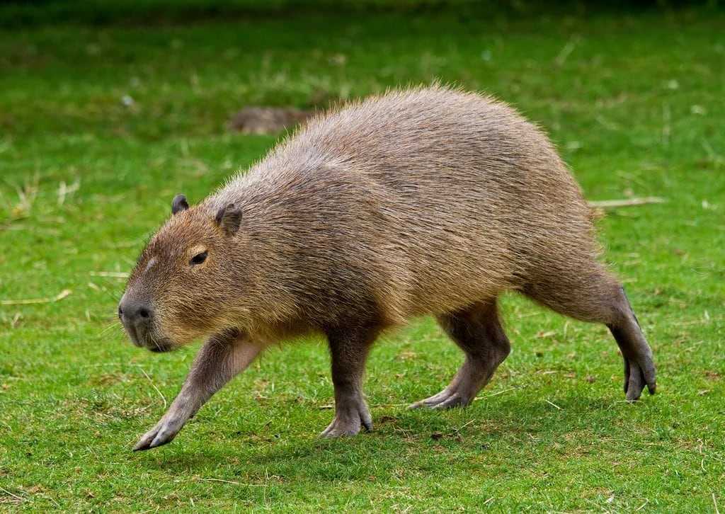 Ее еще называют водосвинкой. Это травоядное млекопитающие, его название состоит из 8 букв (капибара), зачастую спрашивается в кроссвордах и сканвордах. Длина его тела – 1-1,35 м, высота – 50-60 см. Самцы могут весить от 34 до 63 кг, самки – еще больше, от 36 до 65,5 кг. Внешне капибара чем-то похожа на морскую свинку, у него продолговатое тело и жесткая шерсть.