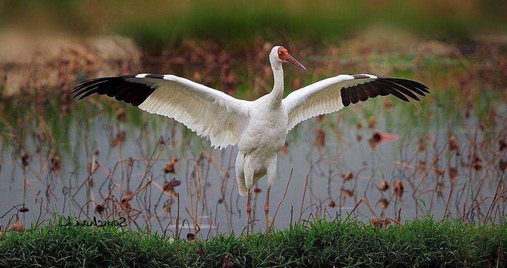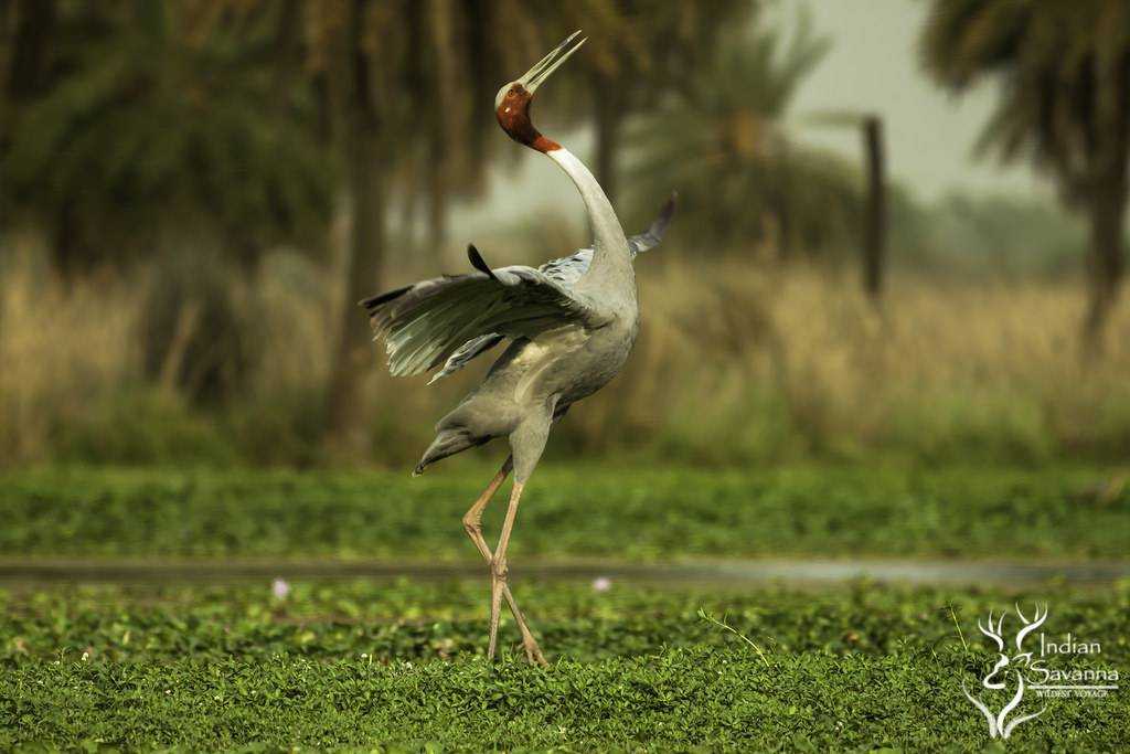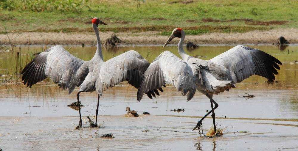 Отдыхают индийские журавли часто на мелководье, где они спасаются от наземных хищников.