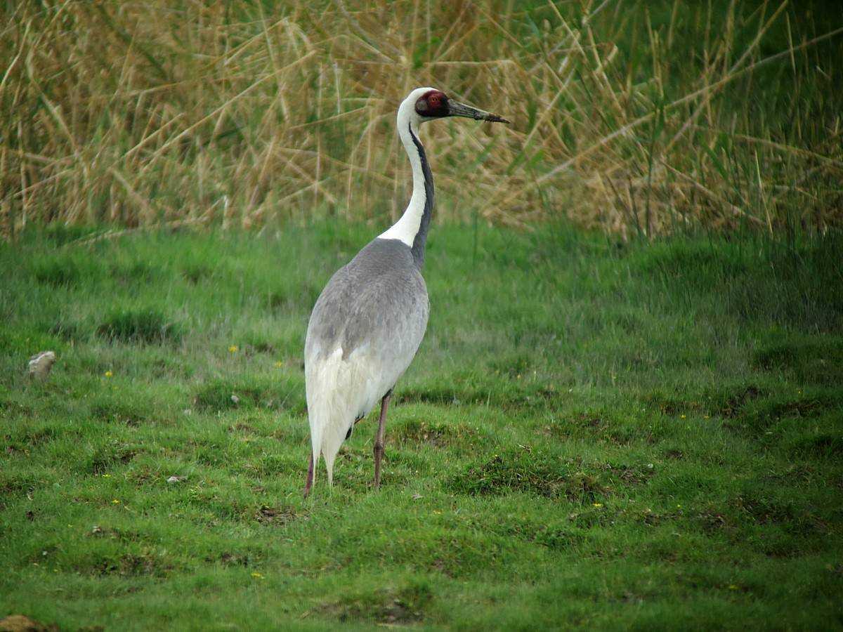 Крупный журавль, достигающий роста в 135-138 см и веса до 5,6 кг. Обладает пепельно-серым оперением, за исключением светлой задней части шеи и головы, и ярко-красного неоперенного участка возле глаз. Единственный журавль, ноги которого имеют розовый цвет. Эндемик Восточной Азии, заселяющий бассейн Амура, – Северо-Восток Китая и Монголии, юго-восток России. Численность вида составляет 4900–5300 особей. Один из наиболее терпимых к присутствию человека видов, гнездящийся на заболоченных участках среди полей, неподалеку от населенных пунктов и часто посещаемых человеком мест. В отличие от японского журавля умеет гнездиться на прогоревших участках.
