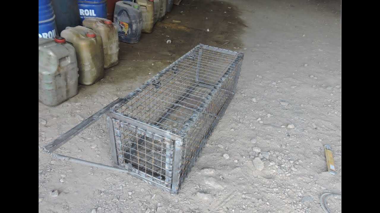 Из арматуры свариваются прямоугольный каркас, двери и захлопывающий механизм, который будет срабатывать, когда зверь попробует утащить приманку с деревянной педали на пружине. Каркас обшивается прочной металлической сеткой. Такая ловушка располагается возле курятника.