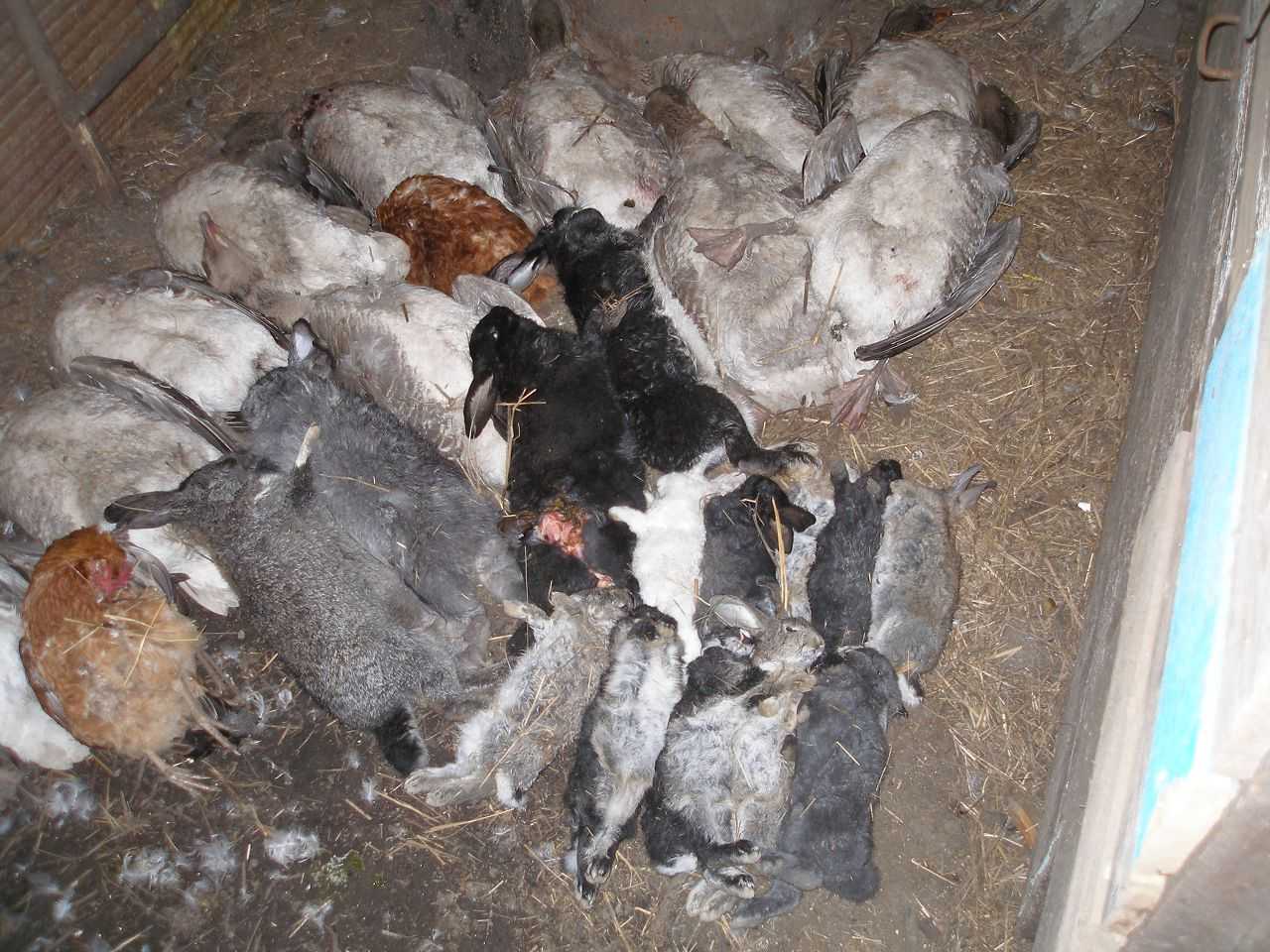 - Много передушенных кур. Мелкие хищники заходят в курятник и передавливают кучу птицы, хотя для того, чтобы насытиться, им хватает одной-двух особей.