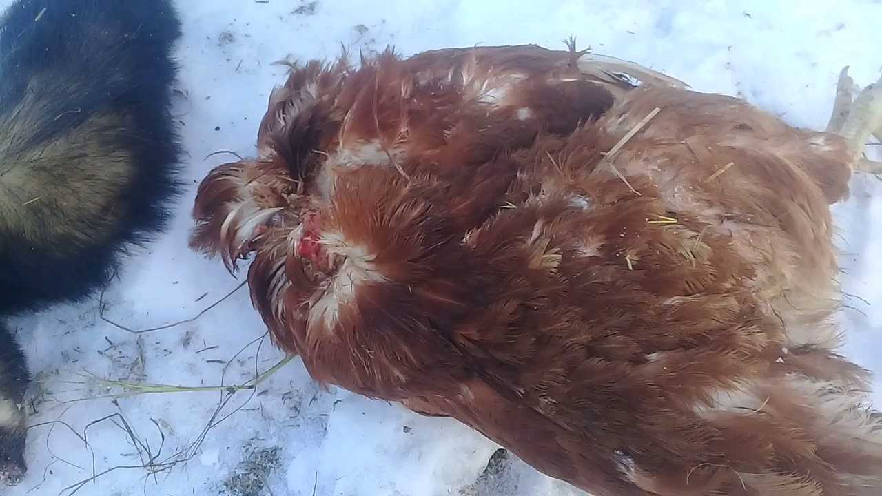 - курица или птенец со следами перегрызенного горла.