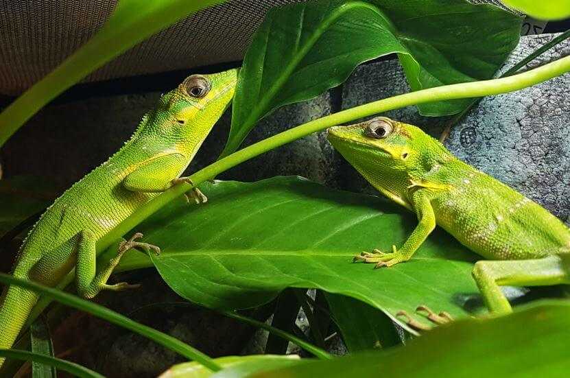 Анолисов часто содержат в неволе в террариумах с хорошим озеленением.