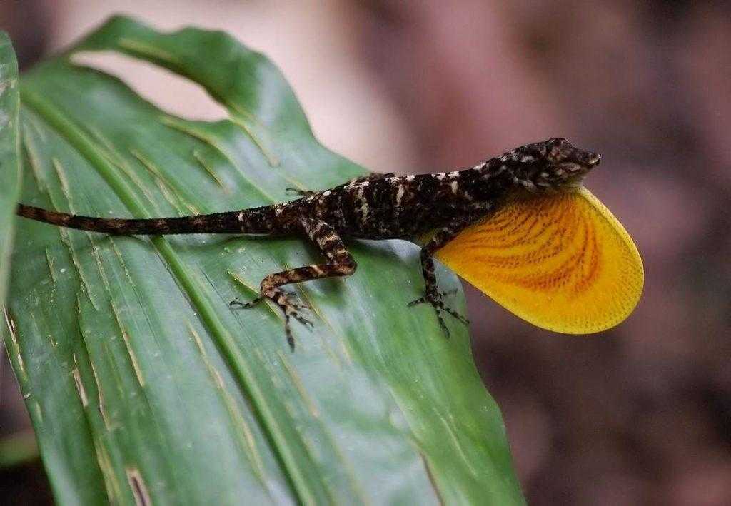 Есть еще один интересный вид — бразильский листоносый анолис примечательный тем, что у его представителей на кончиках морд имеются чешуйчатые плоские выросты, далеко выдающиеся вперед. Благодаря этим выступам у ящериц создается необычный вид.