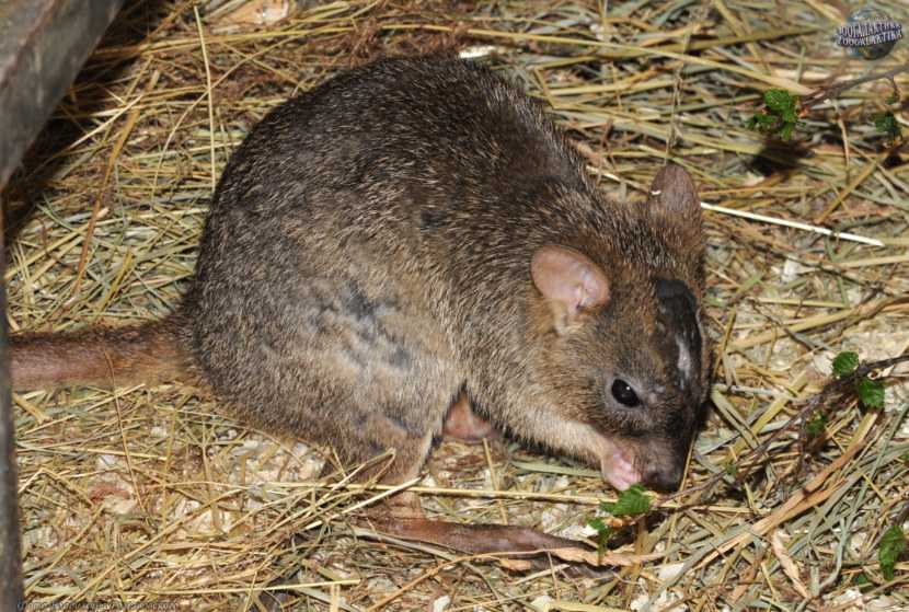 Это самый маленький кенгуру, внешне напоминающий грызуна, с длинным хвостом без шерсти. Вес зверька не превышает 1 килограмма, а вырастает он лишь до полуметра.