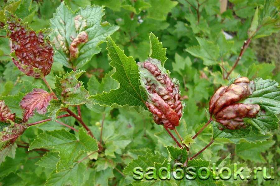 - Листовая галловая тля. Имеет овальное тело размером 3 мм желтого или светло-зеленого цвета. Этот вид способствует образованию на листьях желтых или фиолетовых вздутий – галлов.