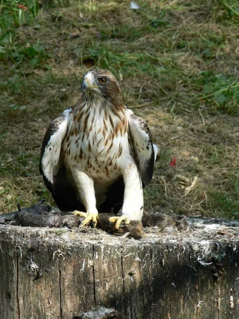Грозный хищник питается рыбой, земноводными, птицами, мелкими животными и даже падалью. Своих гнезд он не строит, предпочитая занимать чужие. Из-за быстрого сокращения численности кречет был занесен в Красную книгу”.