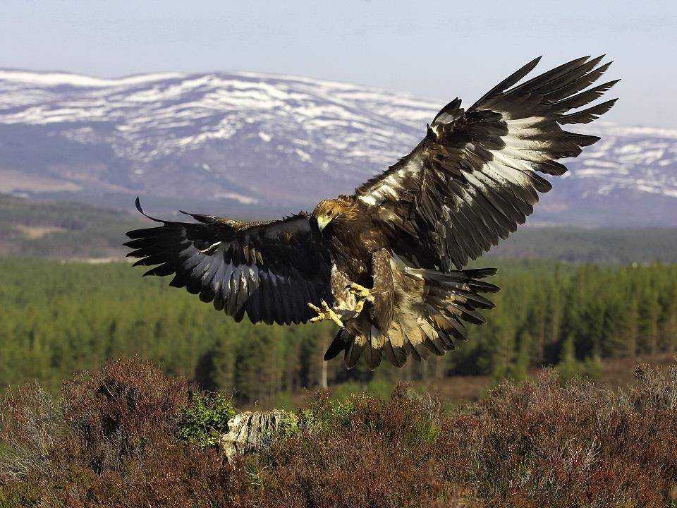 Орел преследует животных не только на земле, но и в воздухе. Он способен поймать добычу в полете. Другая хищная птица, сокол, охотится подобным образом. Самец и самка остаются верными друг другу до тех пор, пока живут вместе.