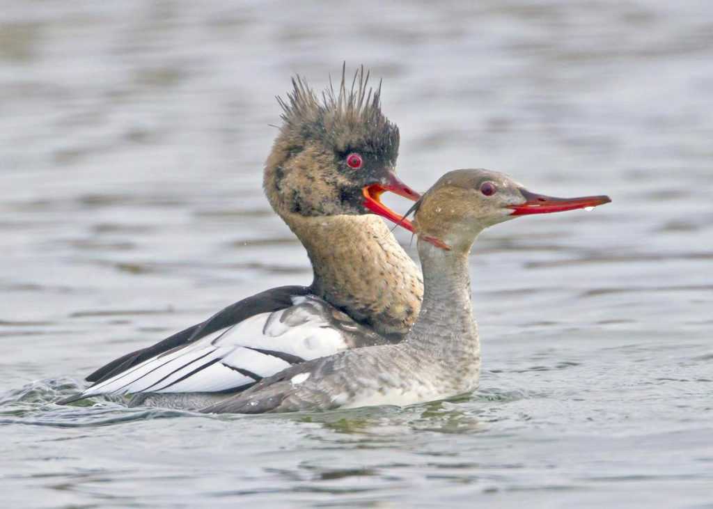 Это самый крупный представитель этих уток, похожий на маленького гуся. Селезни очень ярко окрашены, и форсят белоснежными грудками и хвостовым оперением. Территория гнездовий охватывает всю среднюю полосу, как в восточном, так и в западном полушарии, зимуют птицы в южных широтах, а вот в некоторых областях Центральной Азии, в озерах низовьев Гималайских гор и в Калифорнийских озерах большие крохали живут оседло, никуда не улетая.