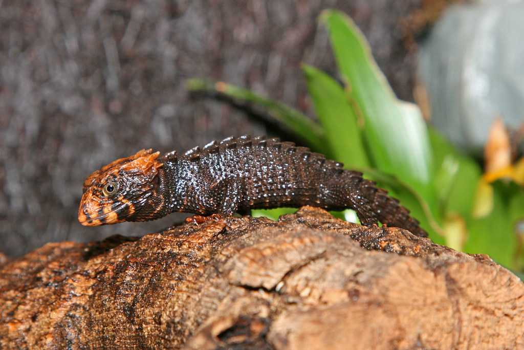 У молодых ящериц длина составляет 6-7 см, у них нет шипов на теле, а голова окрашена в светло-коричневый цвет. Новорожденные ящерицы, содержащиеся вместе с родителями, ничего не едят после появления на свет, но затем они питаются мелкими сверчками. Также малышам можно давать нелетающих дрозофил, но только их нужно обсыпать кальциевой пудрой. Также в качестве корма можно использовать новорожденных улиток ахатинов и дождевых червей.