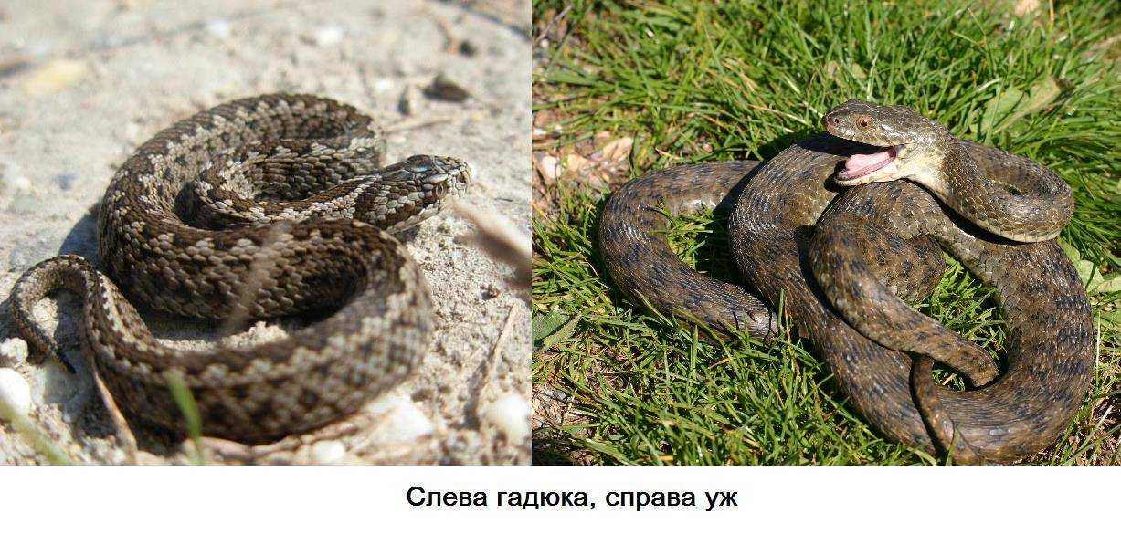 Уж – это неядовитая змея, гадюка ядовита и смертельно опасна для человека. Сходство ужа и гадюки очевидно: обе змеи могут иметь похожий окрас и встретиться человеку в лесу, на лугу или рядом с водоемом. И все же эти пресмыкающиеся имеют определенные признаки, по которым их можно различить: