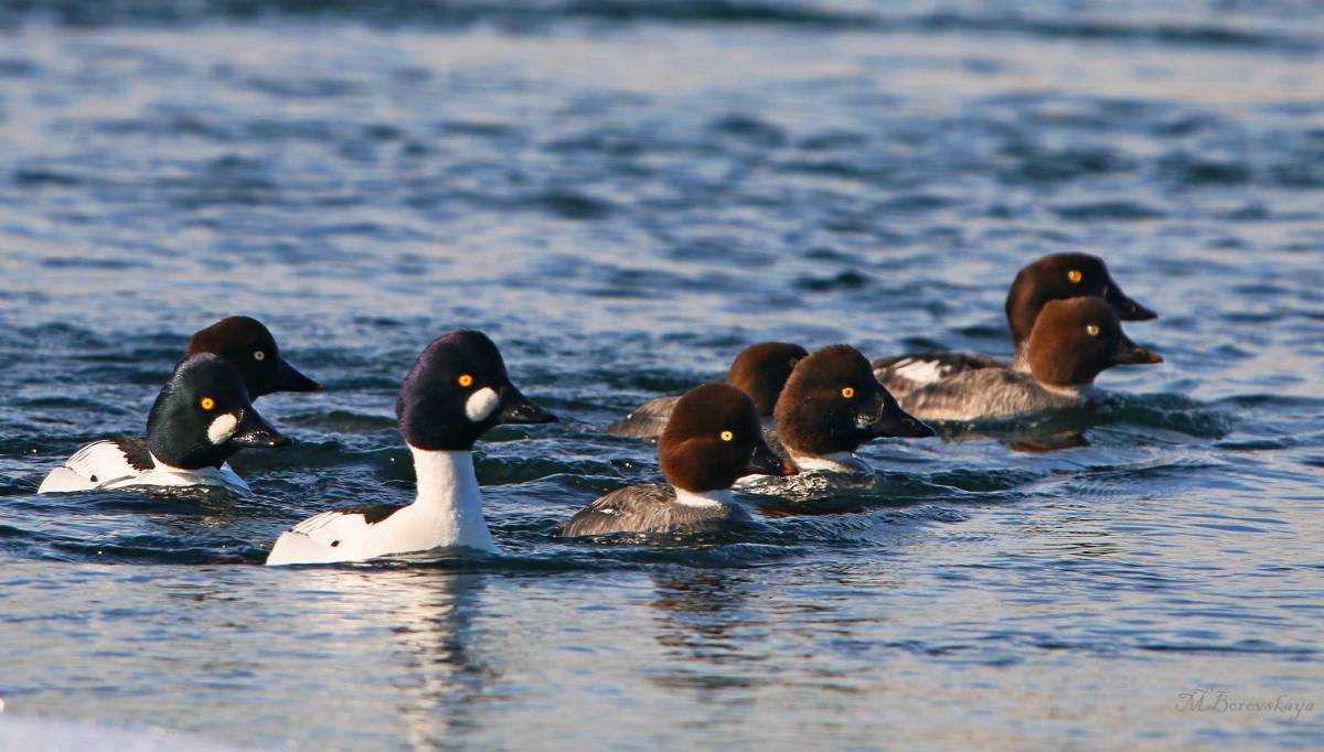 — крупноголовая утка буро-серых оттенков оперения. Живет и гнездуется возле таежных речек и лесных озер. Мигрируют на зиму на Каспий.