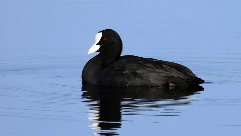 — представитель водоплавающих птиц. Белый лоб и клюв контрастно выделяются на черном блестящем оперении. Зимовку проводит в теплых странах: Индии, Пакистане и на территории юго-восточной Азии.