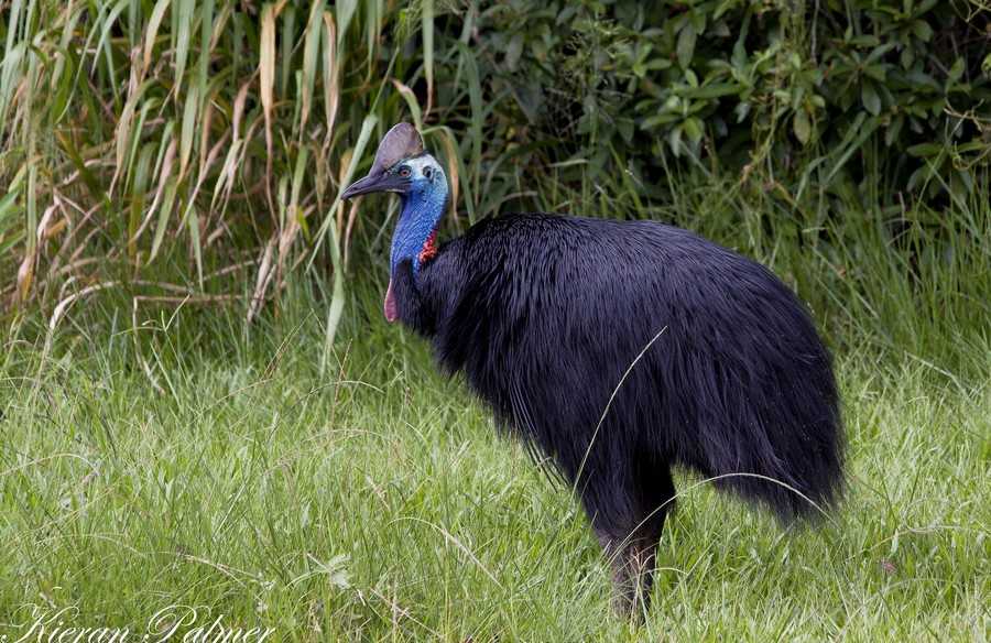 Ещё одна большая птица, лишённая способности летать – казуар. Его можно встретить в тропических лесах Новой Гвинеи и Северо-Восточной Австралии. Его полый роговой гребень на голове, возможно, используемый для усиления низкочастотных голосовых звуков. На средних пальцах казуара есть острые когти, применяемые для защиты и нападения на врагов.
