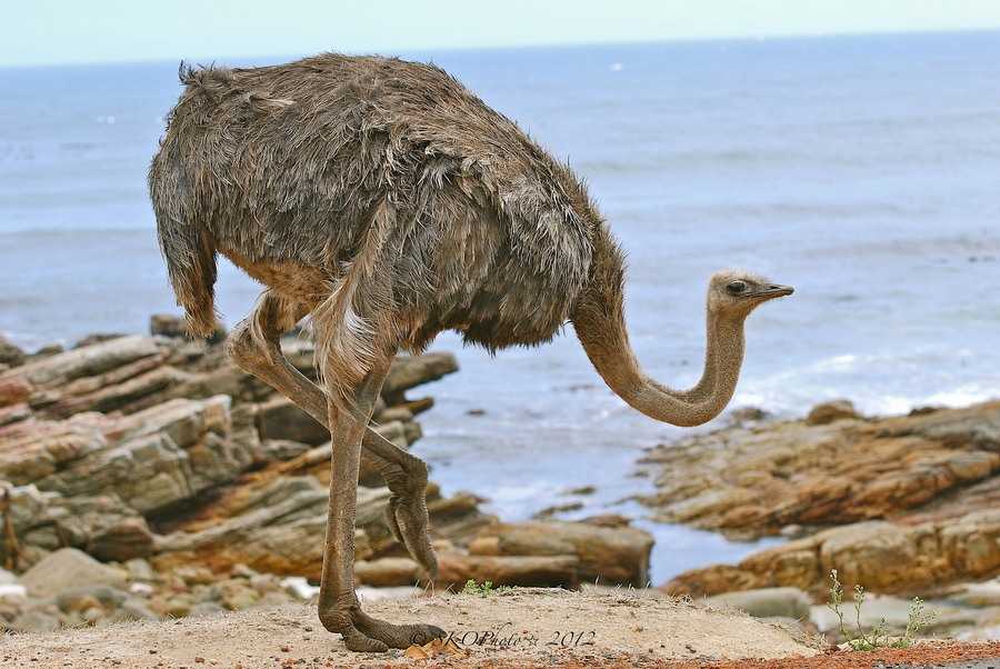 Это самая большая птица в мире, может достигать трёх метров высотой. Страус ‒ не способная летать африканская птица. Страус также является самым быстрым двуногим существом: он бегает со скоростью около 70 км / ч. Страусиные яйца ‒ самые крупные среди птичьих яиц.
