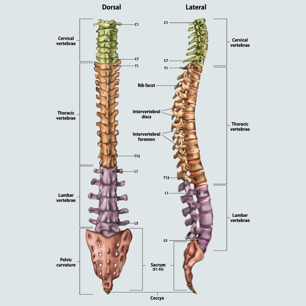 Позвоночный столб состоит из маленьких костей, называемых позвонками, которые делятся на различные типы в зависимости от региона, в котором они присутствуют:
