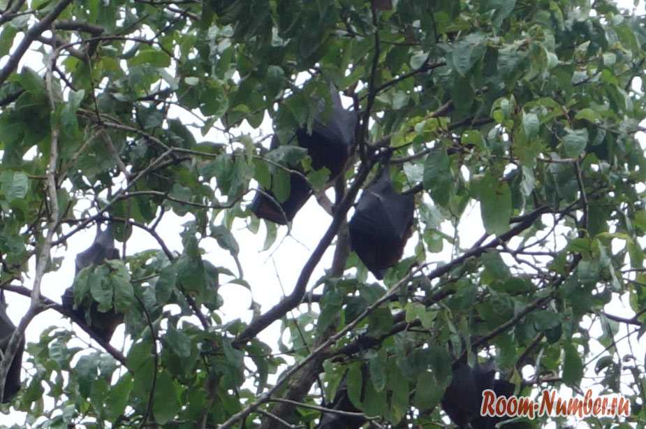 С ними мы уже сталкивались все в той же Шри Ланке, в городе Канди. На Перхентианах они так же висят стаями на деревьях прямо над отелями. Громко и противно пищат, особенно утром и вечером.