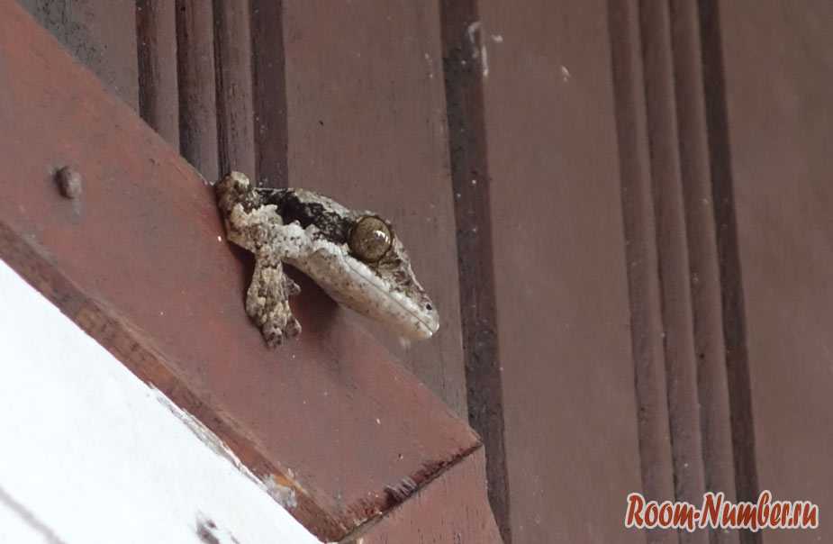 Заметили однажды эту крупную ящерицу под крышей отеля Cozy shalet.