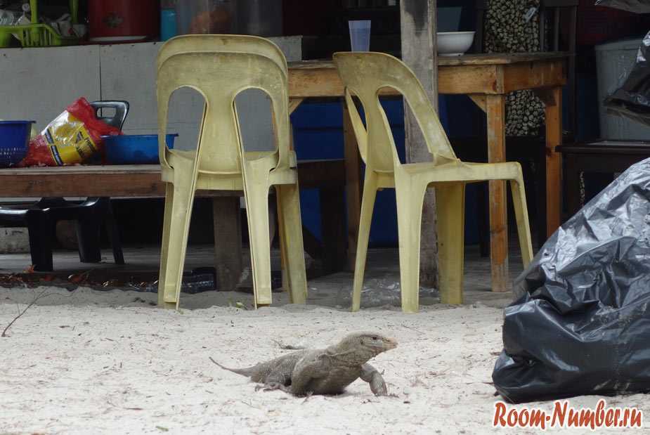 Monitor Lizard на Перхентианах вместо собачек. Шучу. Их не так много, но встречи с ними не избежать. Обычно людей боятся и неспеша уходят. Огромных варанов, как на Ланг Тенгах, не замечали. Скорее по размерам такие, как на острове Рача в Тайланде.