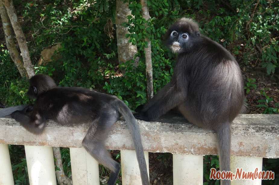Очковые лангуры много где живут в Малайзии и в других азиатских странах. Мы их видим далеко не первый раз так близко, но все равно каждый раз это круто. Они отличаются от мартышек благородностью. Не проявляют агрессию к человеку, если не подходить слишком близко.