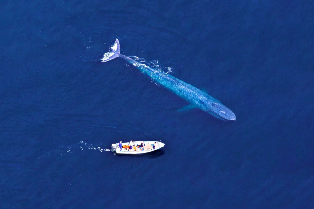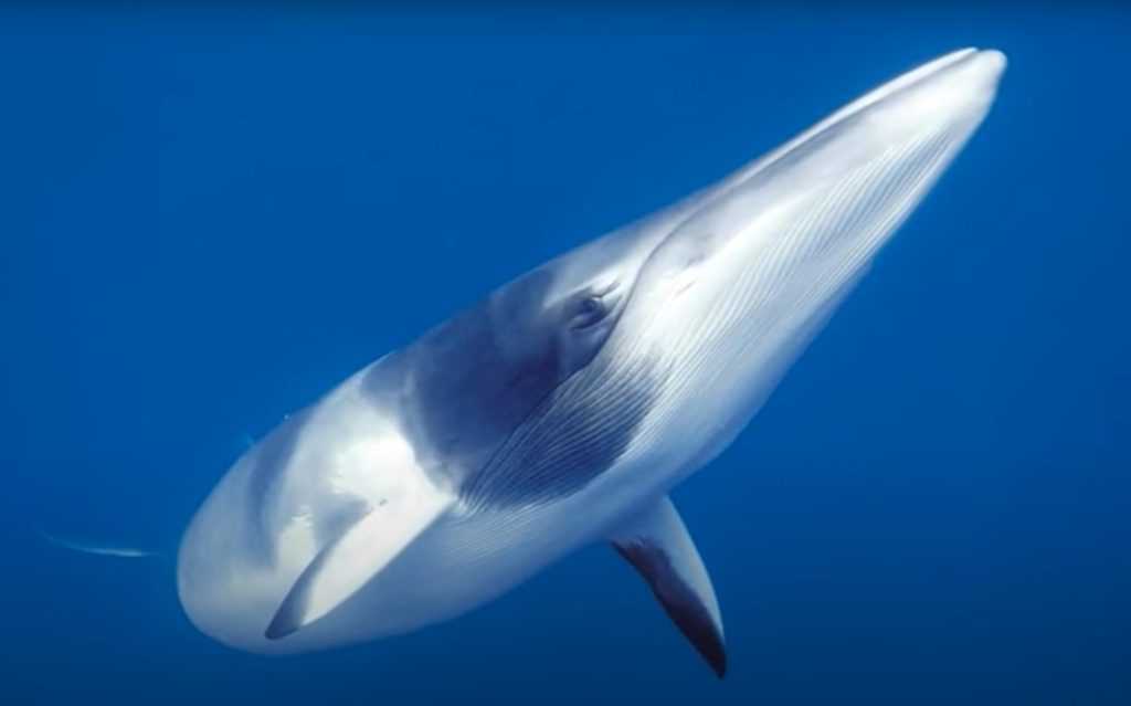 Синий кит по праву признан самым большим китом в мире. Фотографии морского гиганта в сравнении с человеком выглядят очень эффектно. У него серая окраска с голубым оттенком, вытянутое туловище, огромная голова, широкая нижняя челюсть, охватывающая верхнюю.
