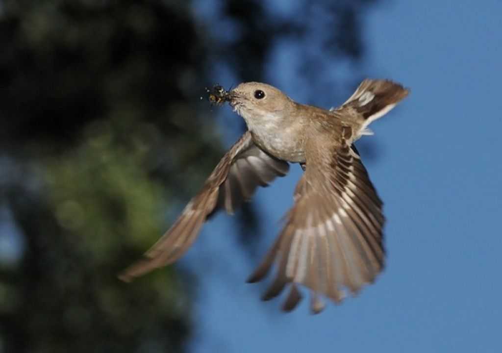 В период гнездования мухоловки-пеструшки приносят птенцам корм до 500 раз в день. За все время выкармливания потомства родители совершают порядка 5000 вылетов за едой. Если подсчитать, сколько насекомых уничтожает одна пара мухоловок за гнездовой сезон, то получится очень внушительное число: их общая масса может достигать килограмма. Неплохо для птички, весящей не больше 20 г!