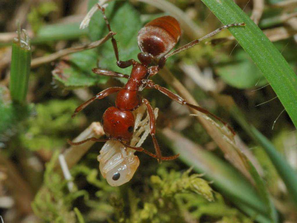 Они бесстрашные воины. И в своих разбойничьих набегах они похищают куколок других муравьев. Из личинок появляются рабочие муравьи и принимаются за работу: чистят, достраивают муравейник, кормят своих «хозяев». Ведь, несмотря на свои способности военного характера, амазонки даже прокормить себя не способны!