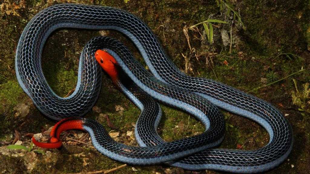 Известна также как синий коралловый полоз или аспид. Очень яркая и необычная змея длиной менее 1,5 метра (по праву относящаяся к роду украшенных аспидов), обладающая уникальным для данных животных, да и вообще для позвоночных существ, ядом. По составу он ближе к веществу, которым поражают свои жертвы скорпионы и пауки. К тому же вырабатывается яд у кораллового полоза в специальной железе, занимающей четверть всего тела.