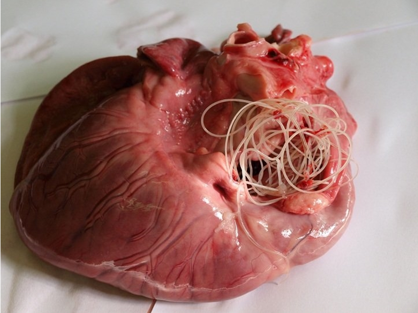 Сердечные черви могут быть обнаружены в правом желудочке сердца при вскрытии. Так диагноз устанавливается после смерти собаки.
